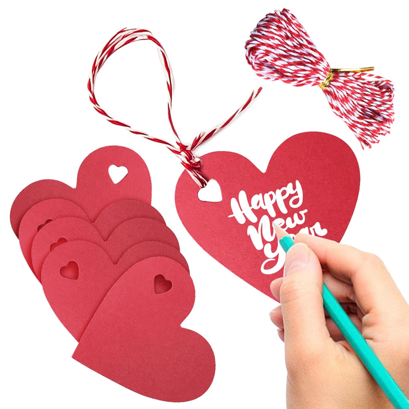 Details: 【BLANK WRITABLE】The gift tags can be written with pens of various colors, including ballpoint pens, fountain pens, markers, etc. You can write the personalized blessings or messages you want to express, making the gift more unique. 【WIDE APPLICATION】The gift tags are suitable for various festivals, such as Christmas, Valentine’s Day, birthdays, weddings, graduations, Children’s Day, Easter, Thanksgiving, parties, etc., making your gifts more beautiful, warm and thoughtful. 【DURABLE MATERIAL】The gift tags are made of thick paper, which can be reused, are not easy to deform and tear, can be written smoothly without allowing ink to penetrate and damage the tag, and can be stored for a long time. 【RED HEART SHAPE】The gift tag is designed in the shape of a red heart, symbolizing love and passion, expressing your deep affection and adding a strong festive atmosphere. It is suitable for giving to lovers, friends or family members. 【WITH ROPE】The 10m rope is used to pass through the hole of the gift tag. The tag can be tied to the gift, or multiple tags can be connected in series to form an exquisite gift string, making the entire gift more exquisite and eye-catching.