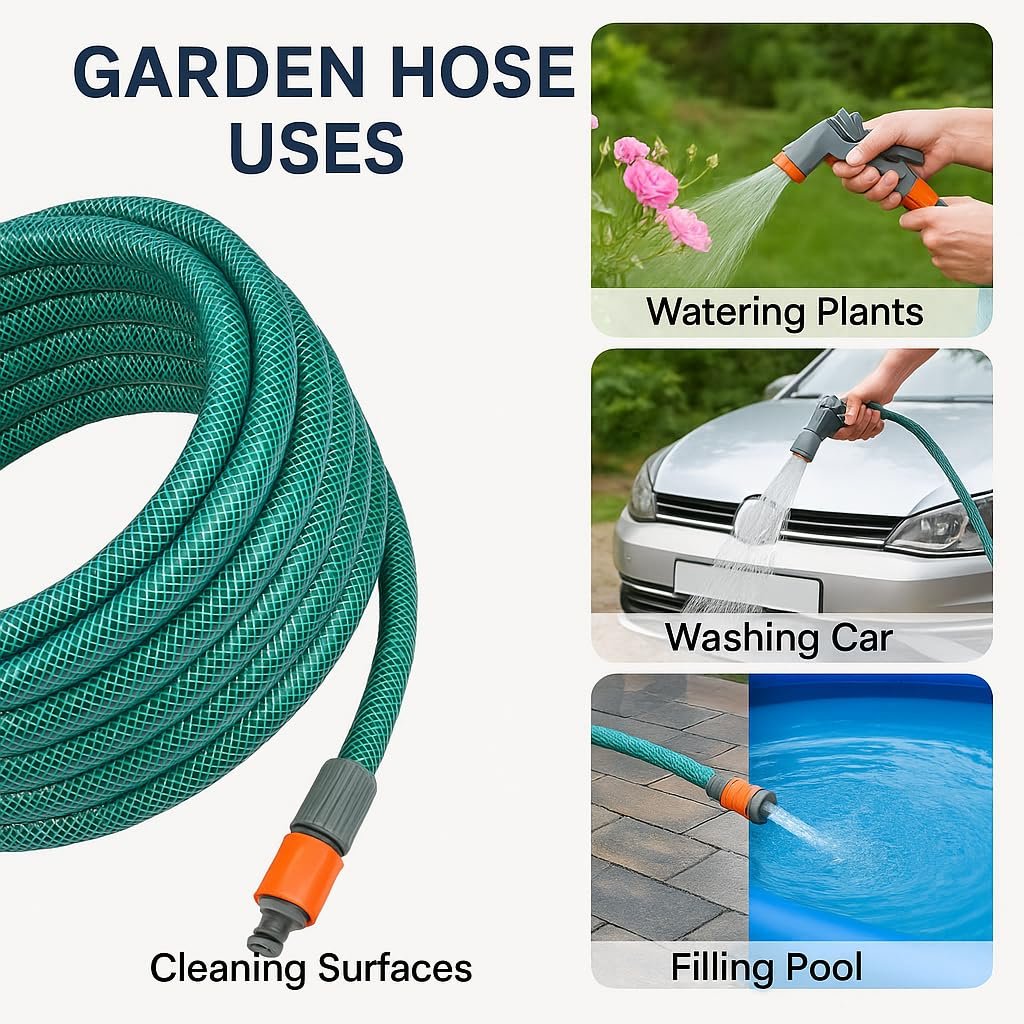 - ✅ The eco-friendly crushproof watering pipe with a universal connector is made with 3 layers of PVC material which make it anti-twisting, this strong & solid construction of hose pipe can serve you for high-pressure purposes effectively without any leakage