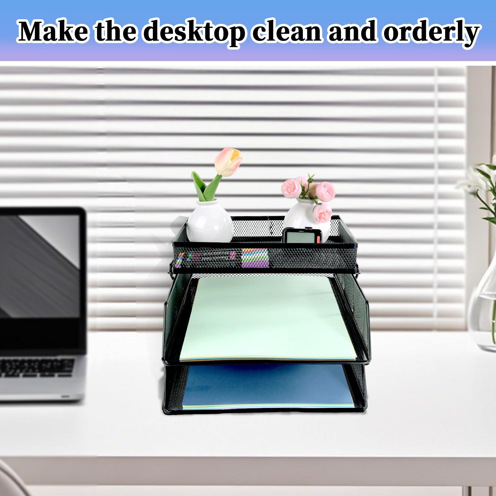 - DESK ORGANISATION: 2-tier mesh letter tray system with integrated top storage compartment for stationery and office supplies