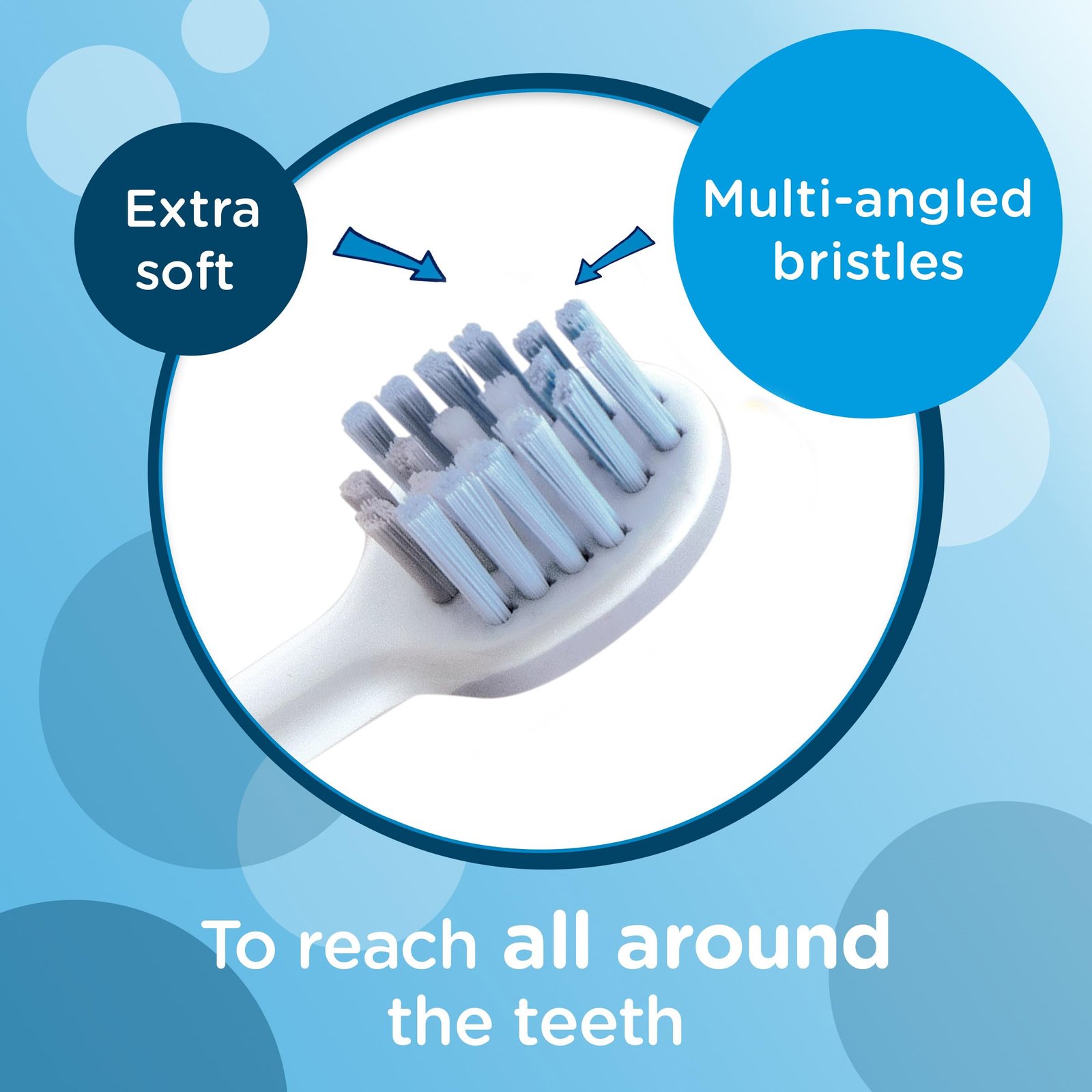 - MULTI-ANGLED BRISTLES: Specially designed toothbrush head with multi-angled soft bristles that reach all around to help clean the surfaces of those precious first teeth.