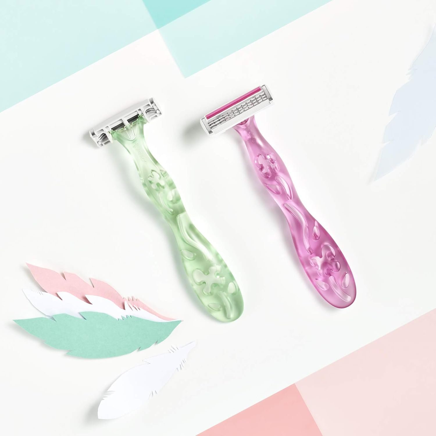 This pack of 8 (4 plus 4) BIC Miss Soleil Sensitive Women’s Razors is the perfect choice for all those women looking for a smooth and accurate hair removal. Each razor features three moving blades move independently and a pivoting head that adapts to the contours of the body for a smooth, smooth finish with minimal irritation. Its lubricating band, enriched with aloe vera and vitamin E, ensures a perfect glide on legs, armpits and groins. Its wide ergonomic design handle perfectly adapts to the special characteristics of female hair removal to offer good grip and optimal control. And for the hair removal session to be even more pleasant, the handle is decorated with a beautiful floral engraving and is available in two pastel shades – green and pink. This practical and stylish women’s disposable razor puts all the quality and reliability of BIC at your service. Marketed in more than 160 countries, BIC razors are manufactured with precision machines specially designed by BIC to fit their cutting-edge technological processes. These machines undergo more than 30 rigorous checks and inspections. BIC offers a wide range of high-performance and multi-performance disposable razors for men and women, as well as razors for all types of shaving and hair removal. Thank you, BIC.