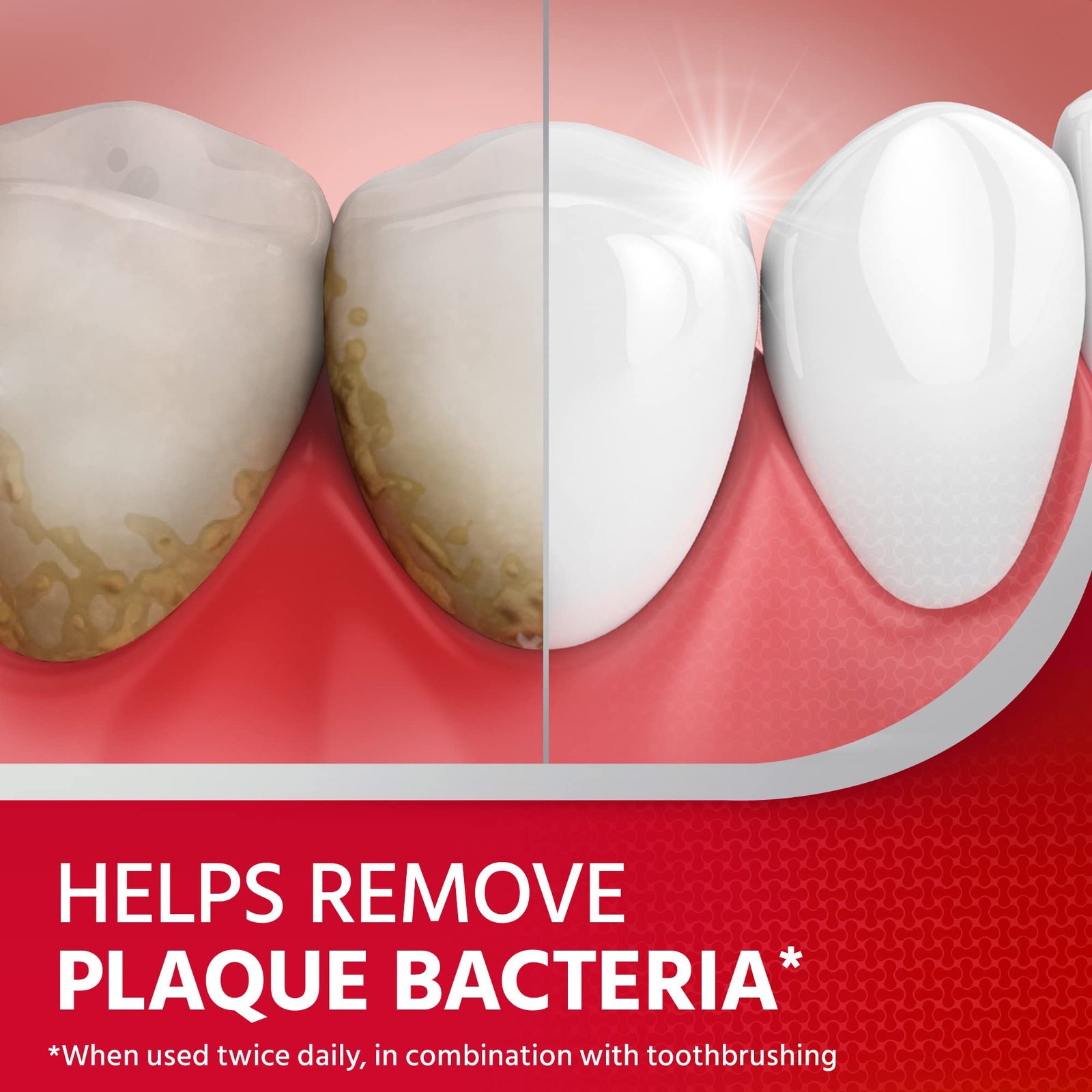 • This fluoride mouthwash effectively targets the bacteria in plaque, where brushing alone can’t reach. It provides 24 hour gum protection against plaque build up, when used twice daily in combination with tooth brushing.