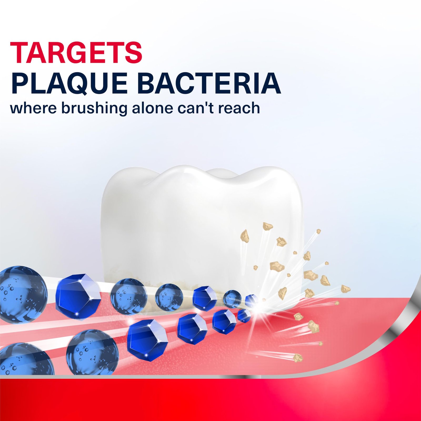 - This fluoride mouthwash effectively targets the bacteria in plaque, where brushing alone can’t reach. It provides 24 hour gum protection against plaque build up, when used twice daily in combination with tooth brushing.