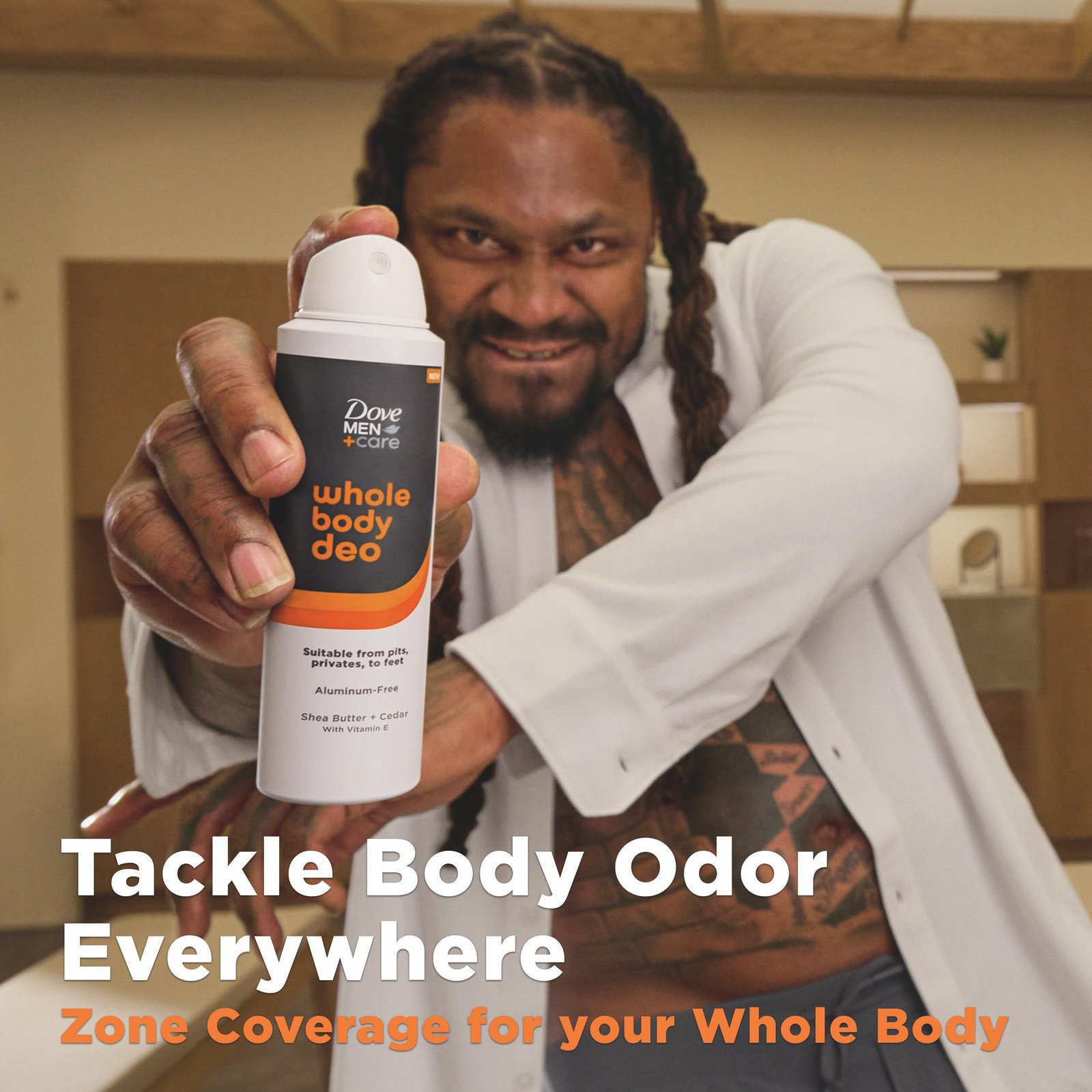 - WHOLE BODY ODOR CONTROL: Dove Men+Care Whole Body Deo deodorant spray is for your entire body—so you’ll get all-day odor protection exactly where you need it.