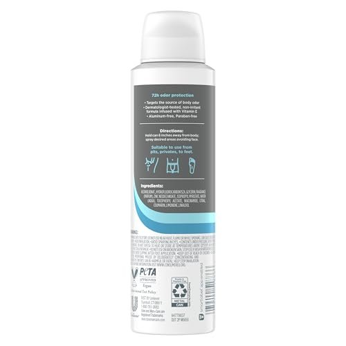 Details: Odor protection isn’t just for your pits anymore. When it comes to deodorant, we know you need the real deal: odor protection for your whole body to keep you fresh and confident all day. That’s why we made Dove Men+Care Whole Body Deo deodorant spray. Our Whole Body Deo provides powerful 72H odor protection that targets odor at the source. Use this deodorant anywhere you need it—from pits, privates, to feet—to help stop odor in its tracks. Our dermatologist-tested formula is non-irritant, aluminum-free, and paraben-free, and it contains vitamin E. Directions for use: Hold the can six inches away from your body and spray desired areas. Avoid your face. Our whole body deo is vegan, and Dove is PETA-approved, meaning we do not test on animals anywhere in the world. Looking for more Dove Men+Care products? Our whole body deo range is also available in a stick format.