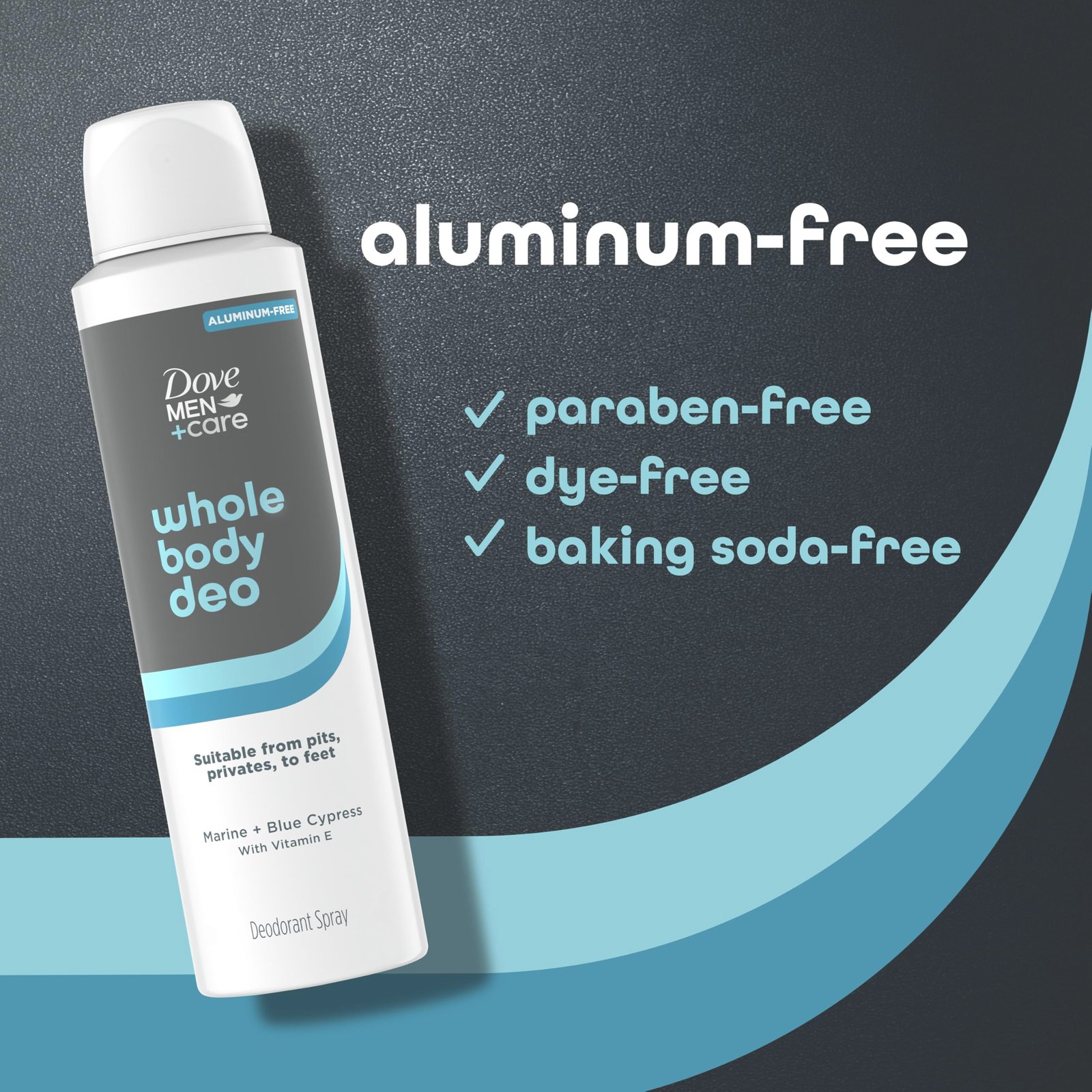 - WHOLE BODY ODOR CONTROL: Dove Men+Care Whole Body Deo deodorant spray is for your entire body—so you’ll get 72H odor protection exactly where you need it.