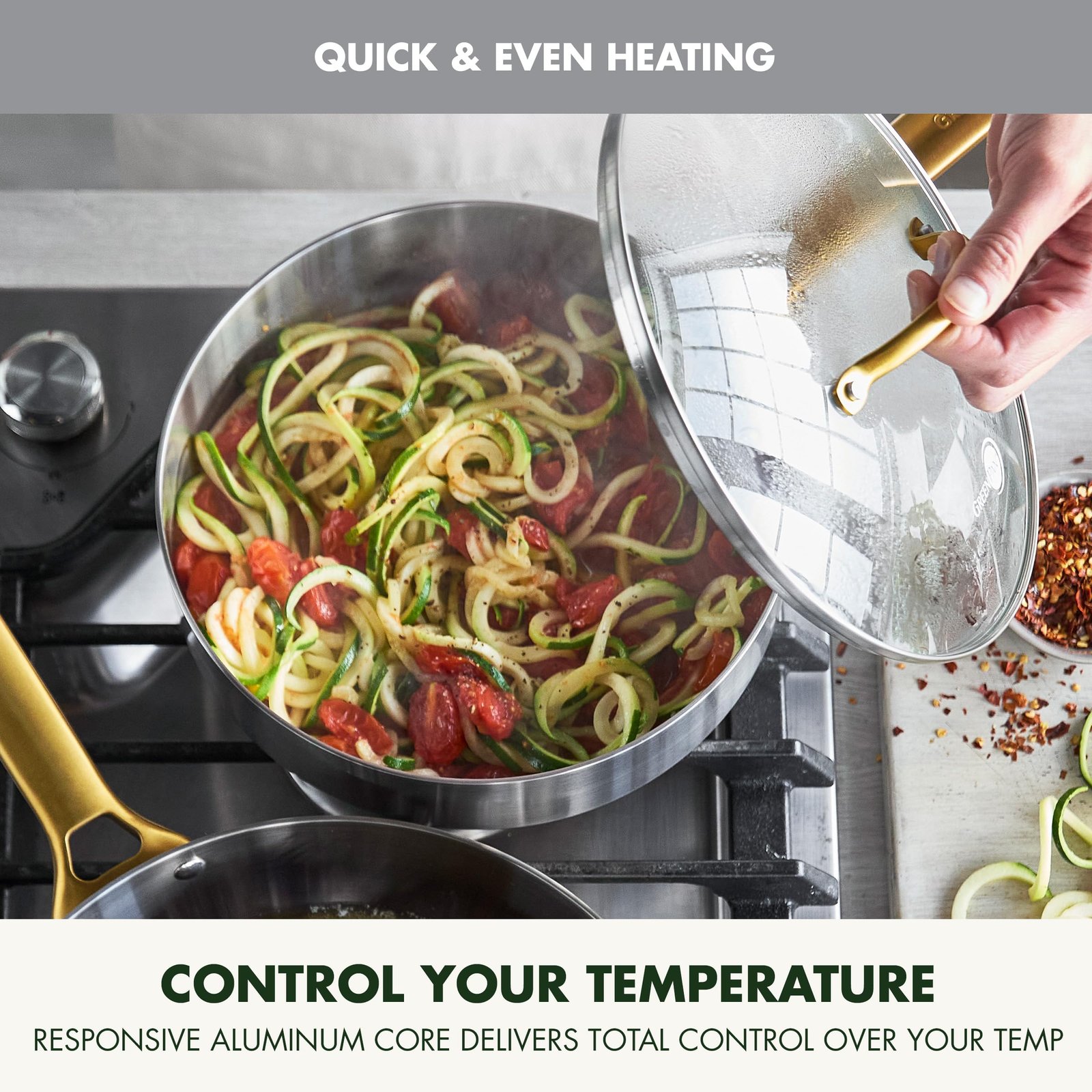 GreenPan Stainless Steel Tri-Ply Reserve 10 Piece Cookware Pots and Pans Set, Multiclad, PFAS-Free, Induction, Oven & Broiler Safe to 600°F, Heat Responsive Core, Dishwasher Safe, Glass Lids