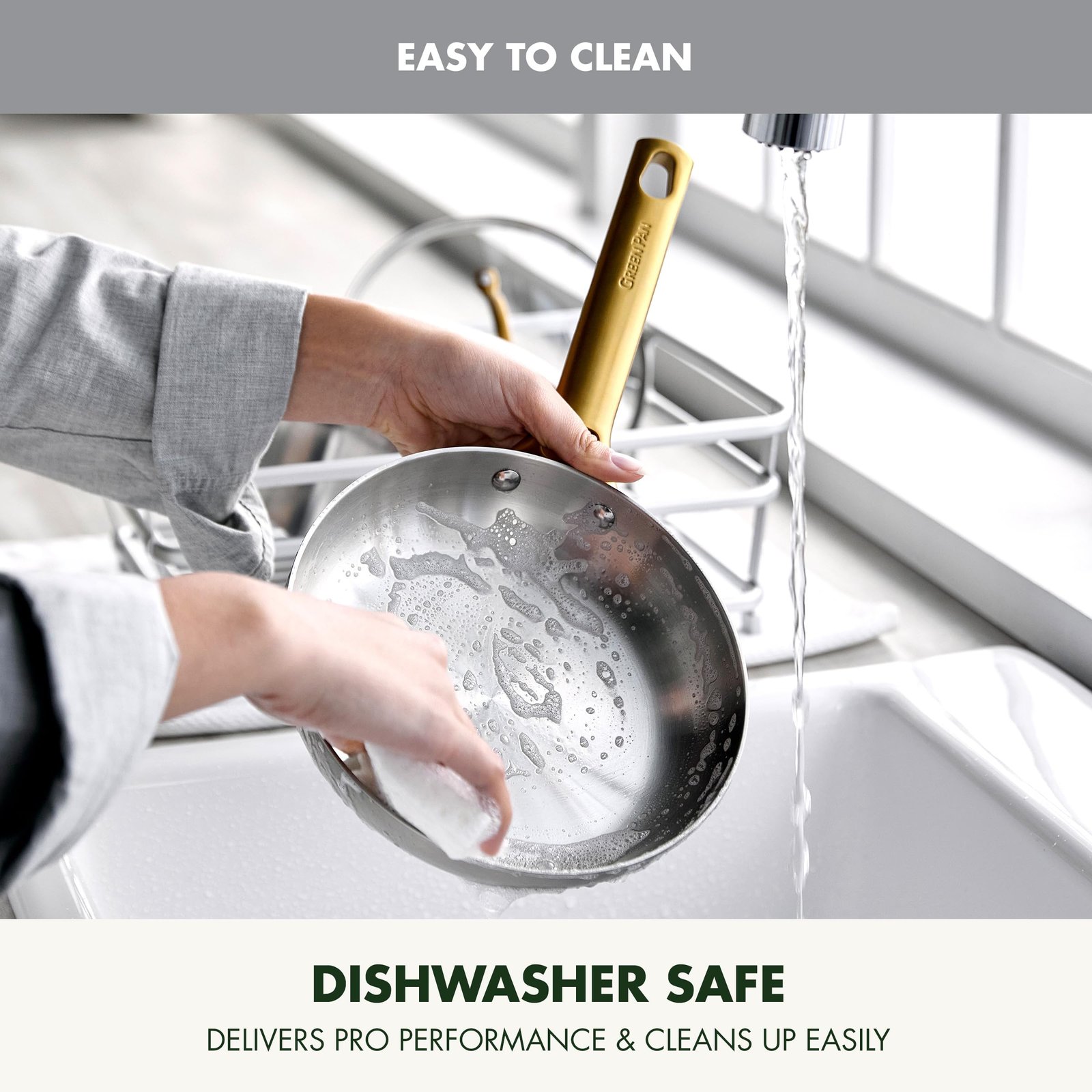 Details: A marriage of cutting-edge design and world-class performance, GreenPan’s Reserve Stainless collection delivers masterful results in style. These high-performance pans are made of professional grade, triple layer, PFAS-free stainless steel. This do-it-all cookware lets you sear, braise, deglaze, roast, broil, fry, and so much more for a lifetime of incredible meals. Crafted with a meticulous attention to detail at GreenPan’s award-winning factory, this collection is built for exploring restaurant-quality flavors at home. It’s everything you’ve come to love from GreenPan and it’s built to last. It’s the perfect complement to GreenPan’s colorful Reserve nonstick collections. These pans are oven and broiler safe up to 600°F (lids up to 425°F) and optimized for all stovetops, including induction. Dishwasher safe. This cookware set includes: 8” frying pan, 11” frying pan, 2.11-quart saucepan with lid, 3-quart saucepan with lid, 3-quart sauté pan with lid, and a 5.19-quart stockpot with lid.
