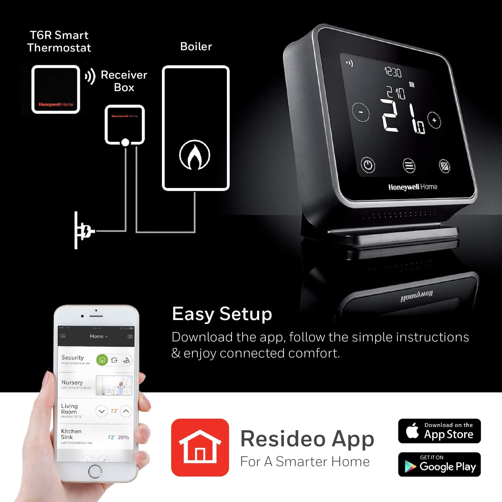 • Wireless Control – This thermostat offers wireless boiler control and room temperature management from any location within your home for ultimate convenience. WiFi App-Enabled to and Improve Efficiency