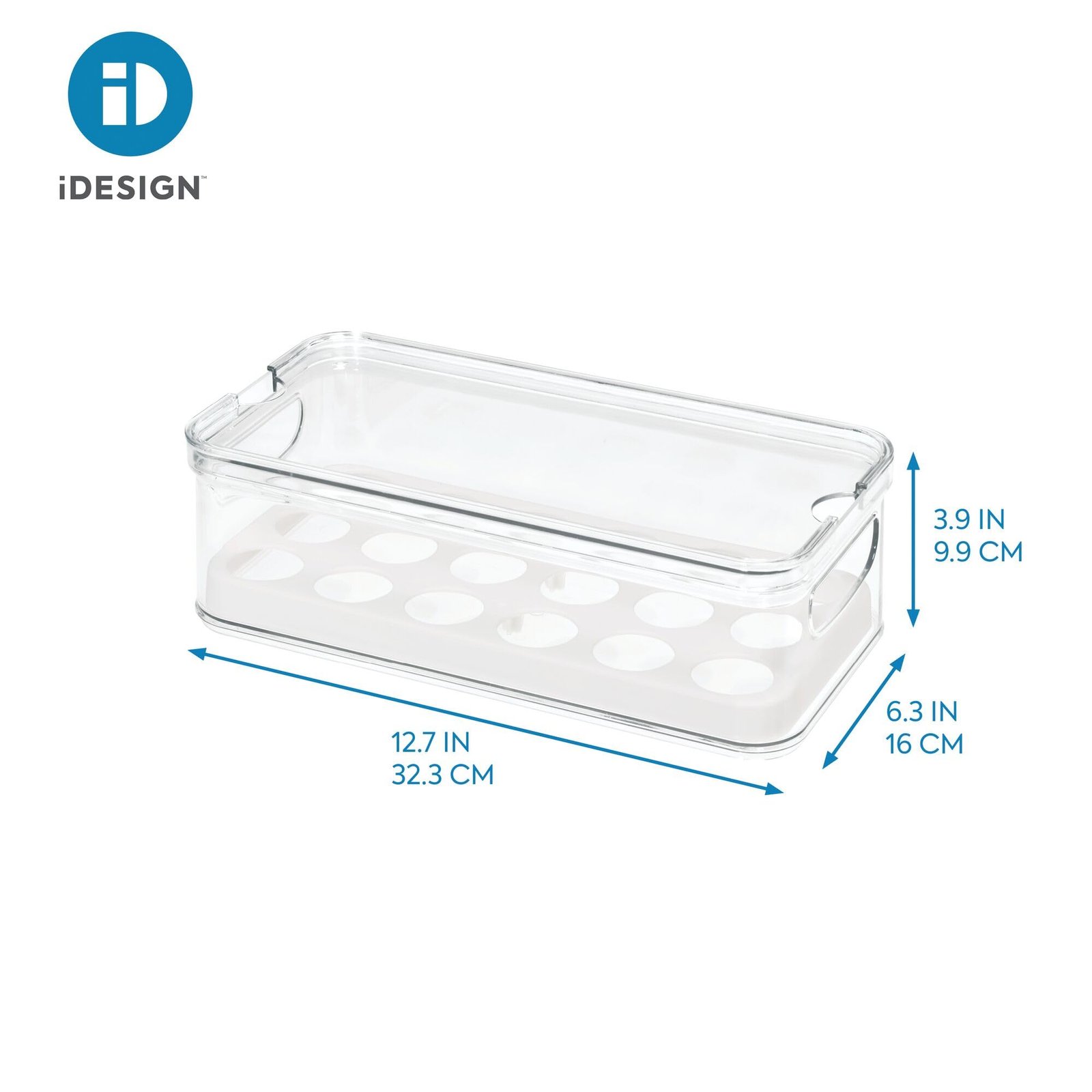 Details: Plastic box with removable insert for storage of up to 18 eggs Why iDesign? At iDesign our sole focus is set on improving and enhancing your daily living environment. We do this through a wide range of products that bring innovation, style and organisation to your home. Each new collection is created by combining inspiration from modern trends with practical and functional designs. Whether you are looking for an update to your kitchen, bathroom, bedroom or elsewhere, discover it within our extensive selection of products today! With iDesign home organisation solutions, you can #livesimply every day. About the Crisp series: The storage boxes from this series create order in the fridge or kitchen cupboard and also help keep food fresh and crisp for longer. For safe food storage, the containers are made of durable BPA-free plastic. Safe egg storage: This plastic box allows for safe storage of up to 18 eggs. It features a special insert which is perfectly formed for eggs and prevents them from being damaged. The insert is removable, allowing the box to be cleaned easily. This also means that the box can be used for storage of other foods like fruit and vegetables too. The box is easy to carry using the built-in handles, and the lid allows several boxes to be stacked. Thanks to the transparent design, the contents are always visible. The fridge or cupboard storage box is made of BPA-free plastic to allow safe food storage. Item number: 71650EU Material: Plastic Dimensions: 32.3 cm x 16.1 cm x 9.9 cm. This product is not dishwasher safe.