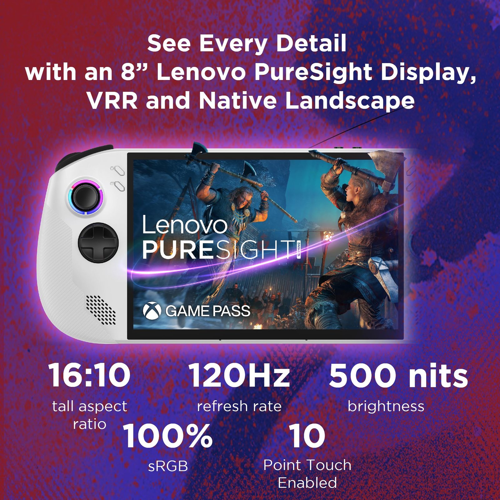 - The 8-inch WUXGA display brings every moment to life with crystal-clear visuals and a 37% larger viewing area than typical handheld gaming consoles. The smooth 120Hz refresh rate and VRR, with native landscape and a tall 16:10 aspect ratio, you get a wider, more immersive view of your world.