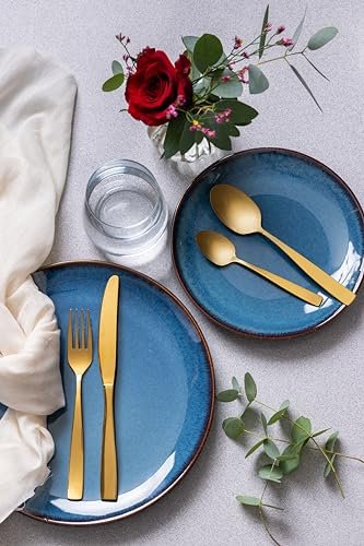 - CARE & USE | Made from durable stoneware, the dinner set is dishwasher and microwave safe.