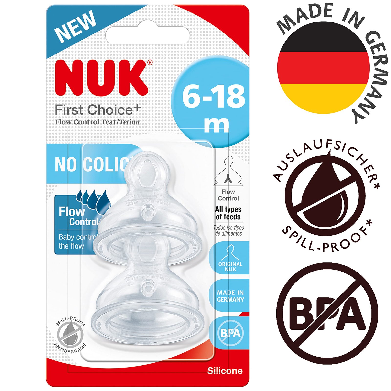 - Fits all NUK First Choice+ bottles; BPA-free; made in Germany