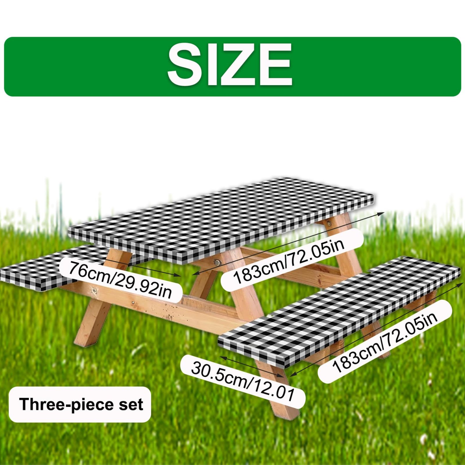 - Classic design: Our picnic table cover with bench covers feature a classic black and white plaid pattern, adding a touch of timeless style to your outdoor dining environment.