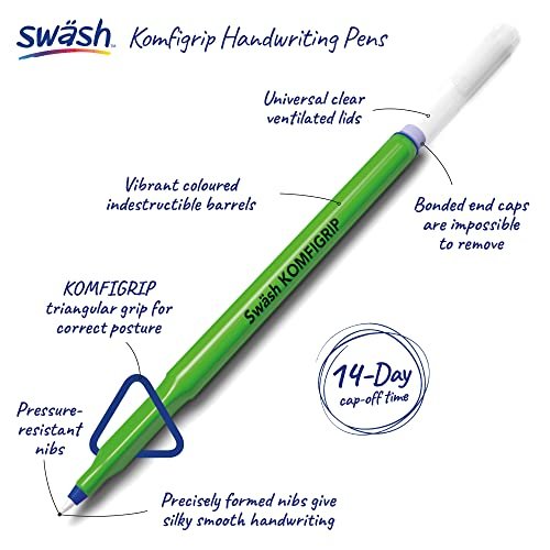 - KOMFIGRIP DESIGN: These Swäsh Handwriting Pens have been carefully designed for your comfort – the triangular grip will encourage perfect writing posture & give you a comfortable writing experience